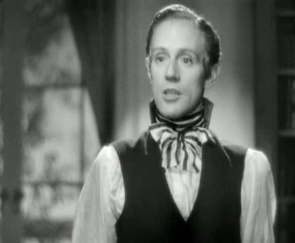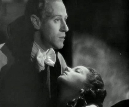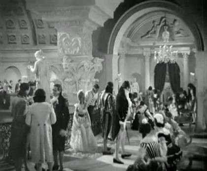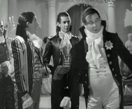 The weight of sustaining the film falls heavy on Howard’s and Oberon’s shoulders. Howard was just hitting the height of his fame, as he was starring in the hit play The Petrified Forest and had played the lead in a Hollywood adaptation of Somerset Maugham’s Of Human Bondage opposite Bette Davis. At first, Korda had offered the role of Percy to Charles Laughton after the success of Henry VIII, but fans of the books objected. Howard’s specific screen persona here came to the fore, in playing a man who seems emotionally obtuse and physically mild, and yet who actually possesses surprising moral and mental force; Howard would offer several variations on this character before his sad death in 1943. His performance as Percy, nonetheless, has a clarity and simplicity of technique that puts me in mind of Paul Scofield, in the precision of his shifts of character registered in diction and restrained physical emphasis, his delightful skill in swinging from pallid overcivility (the curse of his Ashley Wilkes in Gone With The Wind, 1939) and mincing foppishness, to an unconventional, but steely, convincing rectitude. He’s particularly excellent in the key scene the couple have after the ball, in which Marguerite distraughtly confesses how Chauvelin has used her, and Percy asks just what she’s done in exchange for her brother’s freedom, with a sudden revelation of the anger and pain he’s been sitting on. As Marguerite breaks down and appeals to him with real desperation, he comes precariously close to kissing her as he realises she’s a victim and not a villain, but remembers himself at the last moment and pulls back with obvious difficulty.
