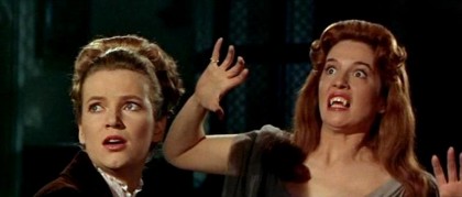 Revising the story for a straitened production and with an eye to a tighter, more intimate story, the filmmakers stripped away much of the foliage of Stoker’s novel, including the long voyage from Transylvania to England, the hunt for the vampire’s resting place, and the wealth of background characters, to concentrate on the essential idea of Dracula as dark force assaulting the Victorian bourgeois idyll and faced down by the forces of iron rationality. Jonathan Harker (Fisher regular John Van Eyssen) was changed from a naïve realtor to a fellow scholar engaged with Van Helsing in infiltrating and uncovering abodes of the undead, letting himself be engaged by Dracula to archive his library as a Trojan Horse warrior bent on tracking down the vampire’s resting place and killing him. Fisher set out to bait the audience into taking Dracula as a figure of campy appeal by having him first appear as a looming shadow at the top of the stairs, and then undercut it by having Lee stride into the light, imperious, courtly, smoothly charismatic. Evil suddenly was sexy.