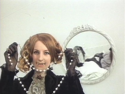 Jirês’ film, based on Vítezslav Nezval’s novel, fuses ecstatic fantasia and gothic fugue into a singular vision that interrogates the symbolic underpinnings of so much imagery common to folk-myth. It’s also a lethally funny satire, on repression, anxiety, family roles, and sexual awakening, as well as a celebration of the fecundity of humanity—especially its feminine variety—and the imagination for moulding the world. The initially bewildering run of visions that sets Valerie in motion reveals the heroine at the cusp of womanhood, in images of sentimentalised ripeness similar in effect and intent to Picnic at Hanging Rock’s reclining, meditating maidens. For example, Valerie delighting in a pair of earrings that she cups with delight (at one point she holds them to her chest, and they do seem to symbolise her filling adolescent breasts), and the recurring image of the girl swimming in the lily-clogged water of the fountain at the centre of the main square of her town. That fountain is the very heart of the film’s geography and of the action, and Valerie’s swim evokes the purest image of a water-nymph ready to snatch herself another Hylas.