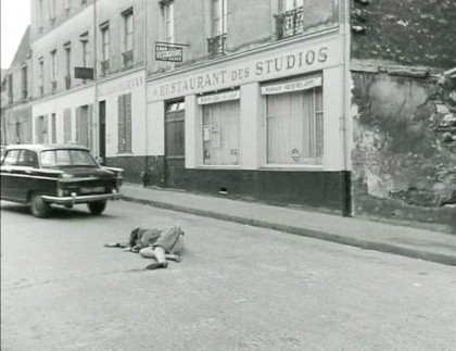 Godard takes this likeness literally as he sets up Nana’s death. Raoul suddenly sells her to some gangsters in exchange for a sum of cash, his justification being that she’s been turning down too many clients. But the handover goes awry, as Raoul realises he’s been underpaid, whilst the gangsters seem fairly eager for a reason to gun him down. Nana is quite literally caught in the middle as Raoul uses her as a human shield: one of the gangsters’ bullets hits her, and then Raoul shoots her himself, seemingly deliberately, and flees, leaving her sprawled on the road. Coutard’s camera tilts down a bit, as if to register shock and desolation, and then cut to black: that’s a wrap. This end is both deeply distressing and blindingly fast, a terrible demise for a woman so full of “life to live,” brought low by her own supposed choices, but finally used up as a pawn. But there’s also Godard’s dispassionate disassembly of genre here, too. Having rejected the original ending he came up with as middling, he went for full-bore tragedy, but then subjected that idea to a radical shift: Nana’s death is almost offhand, the fate of a peasant and plaything, a victim of human commodification and her own sublimation of it. Godard creates his Joan of Arc, but rather than give her the glorious martyrdom of auto-da-fe, leaves her like rubbish in the street.