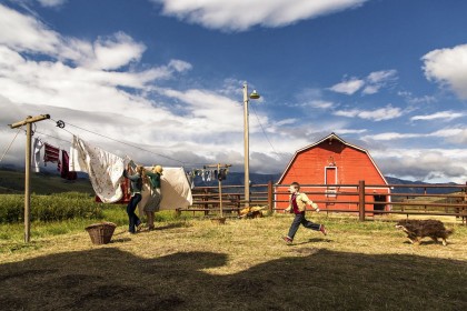 It is best to approach this apparent slice of life as an experimental film to avoid frustration. The plot, such as it is, involves the interactions and reminiscences of a family gathering at a large Berlin apartment for dinner, perhaps a reunion. What Zürcher appears to be interested in is the magic of everyday life, as he trains his camera on the extraordinarily choreographed movements of the family members as they work across one another to pull dishes out of cabinets and weave in and out of each other’s paths. The fantastic enters the scene, such as when a bottle spins in a pot of hot water and a hacky sack flies through the open window from far down below on the street, an impossible kick for the small boy playing with it. Flashbacks occur when various family members tell stories; these stories, which could be spooky but end up not amounting to much, add a certain amount of suspense, another device Zürcher examines in his formalist approach to filmmaking. The wild cards in the deck are a dog and a cat whose behavior we never really see but who the characters assure us are crazy in what sounds like ad libbed dialog. Zürcher trains his camera on two children, particularly a boy, who observe everyone, clearly stand-ins for the director. What they—and he—think of the scene is largely inscrutable, and so may it be for the audience.