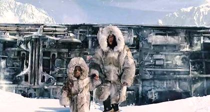 If the Snowpiercer had been deliberately designed as a mammoth Noah’s Ark-like device to save a small section of humanity I might have bought this, but the circumstances of the machine’s construction, when revealed, present the film as a private industrial Spruce Goose repurposed into it present use. The train, when glimpsed from the outside, doesn’t seem all that much bigger than the average Amtrak cross-country express, and couldn’t possibly support enough infrastructure to make the life on the train we see possible, not even to produce the insects ground up for the protein meal. The film is full of unexplained logic jumps as weapons come out of nowhere and characters who shouldn’t know one end of a gun from another suddenly having a working knowledge of automatic weapons. A gunfight is precipitated in the midst of a carriage full of the last kids on earth. Obviously someone doesn’t think children are our future.