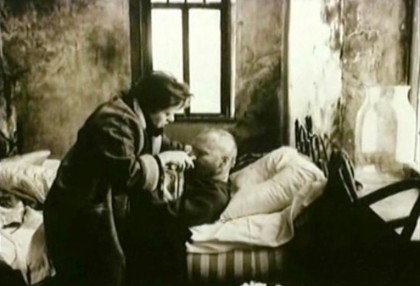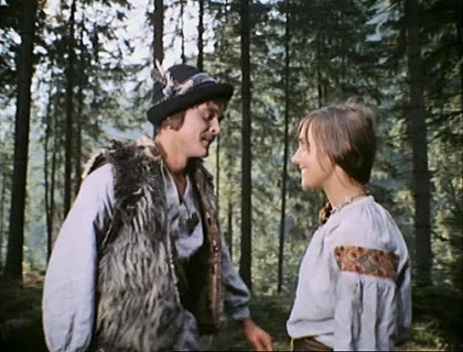 When the pair grows into young adults, they’re still perfectly in love. But Ivan’s mother’s resentments against the Guteniuks have not faded, so their love can still only manifest beyond the boundaries of the town, in the woods and fields. Ivan goes to earn some money as a shepherd in the mountain pastures above the town. One night, when the land is wreathed in a thick fog and the shepherds work to keep their flocks together, Marichka wanders out into the forest, drawn by the light of a strange star. She comes across a lost black lamb on a steep ledge, and, trying to rescue it, plummets to her death in the surging river below. Ivan joins search parties looking for her and comes across her beached, frigid body. He spends the next few years in a state of unproductive grief, increasingly tattered and slovenly, his looks lost behind a beard and filth. He slowly returns to a normal life helping the local church, and especially when he encounters Palagna (Tatyana Bestayeva), a young woman with an estate; they share a charged moment when he shoes her horse and she laps up the sight of him. They are soon married, but the past and the future for these two soon prove sadly tangled.