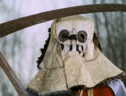 The vignettes of the battle are more memorable than most entire films: the early shots of the ranked Russians, Vasilisa and Ignat amongst them, waiting anxiously under stormy clouds on the great white nothing of the lake, peering into the distance as they try to make out the slowly emerging mass of German cavalry; Buslai and Olexich, after days of resenting each other, embracing before taking their posts; the Teutonic knights riding in with their encasing helmets looking like aliens, robots, steampunk tanks; Prokofiev’s music rising to its most menacing and tremendous swells, low chugging horns and high shrieking string, until the two armies crash into each other in whirls of steel and limbs; Olexich and Alexander’s charge to close the trap; Olexich hurling himself in front of Alexander to save his life and getting a chest full of spear points; the horrified expressions of the traitors in watching the knights lose; Vasilisa working up the courage to come out of her hiding place on a wagon, braver and braver in striking out at the Germans.