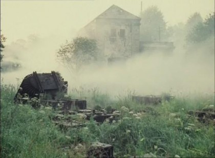 A similar sense of random danger and reality’s familiar rules rendered capricious dominates in the Zone. Indeed, Stalker expressly describes the Zone as capricious. Stalker relates to the Zone as a religion, a god, and quotes scripture incessantly: one of his more suggestive quotes comes directly after that long view of the detritus in the water, in which he speaks of men who did not recognise Jesus when he came to them because of his altered garb, suggesting that something within the story – the Zone perhaps, or perhaps Stalker himself, or his daughter – may be another divine messenger. At another point, Stalker recites passages from Revelations, and the mysterious object that fell to earth suddenly suggests the “star called Wormwood” from the same book, thus shifting the resonances of the story towards the apocalyptic.