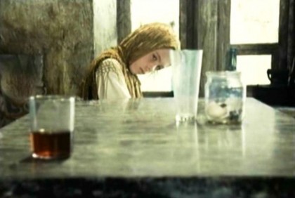 Where the film’s bookend scenes back in the city are filmed in a near-monochrome with a faintly bronzed tint, the Zone is a sprawl of muted, lustrous colour that returns in two concluding shots of Stalker’s daughter, immediately zeroing in on her as the vessel for something as strange and wondrous as in the Zone. Stalker’s devotion to her, carrying her on his shoulders across the inhospitable landscape, is both pathetic and joyous all at once, almost Dickensian, and yet the very last scene moves into a new realm. Like another, more earthbound, yet equally wondrous version of 2001’s star child, the girl sits in her little hovel vibrating to the passage of trains, stares dimly at glasses on the kitchen table, and begins to move them about telekinetically. Stalker’s adventures in the Zone have resulted in his offspring possessing something deeply abnormal, perhaps inhuman, and potentially terrifying. Yet Tarkovsky lets a snatch of Beethoven’s “Ode to Joy” creep into the soundtrack, suggesting that where now the world shakes her house, some day she’ll shake the world right back.