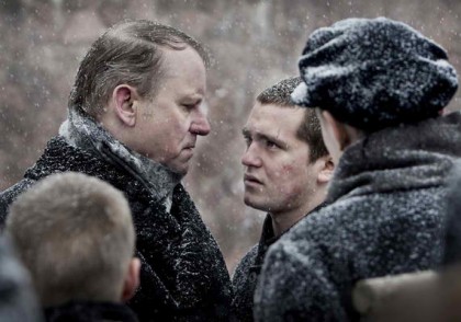 In keeping with this view of the prisoners as boys, not enemies, Stellan Skarsgård offers us a very strict man whose desire to teach right conduct mixes punishment with some compassion. Unfortunately, he is compromised by his desire to keep his young wife Astrid (Ellen Dorrit Petersen) on the island by filching some of the funds meant for the boys’ welfare. It’s hard to condemn him outright because he does seem to have a mission and threatens Bråthen with prison for his disgusting crime; yet, he is also arrogant, telling Olav, who has turned against him for letting Bråthen go, that everything good in Olav came from him. It’s shocking to learn that Olav was sent to the island for stealing some money from a church collection box when he was 7. And what could poor, simple-minded Ivar have done to deserve this treatment?