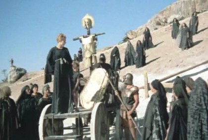 The father is now undergoing treatment for a cancer that proves terminal, and thus he is weighing up his legacy, that of Greece, and perhaps indeed, the previous century’s project. Once a thorough-going idealist, he sees a country that tried to skip directly from agrarian backwardness to modern postindustrialism without going through the evolutionary stages in between, with its agonies of repression and cultural upheaval neatly squared away, leaving a sterile and alien state that can’t support itself. Father announces that he’s boycotting the twentieth century, and regrets leaving this world to Marina. He also remonstrates himself for considering Marina too much of a pal, as now, Marina finally has to take the risk of surrendering herself to erotic violation, which means no longer being able to comment on life as if she’s Attenborough watching the animal kingdom.