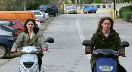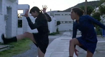 Tsangari, who actually got her masters in fine arts degree in Texas, seems well placed to make a movie about the fascinating contemporary phenomenon of widespread, virtual world citizenship. Thanks to mass culture and the internet, we are all absorbing pop culture from around the globe and able to use those things to define ourselves, and yet we are still contained by immediate surroundings that cannot be transcended, only given up to or abandoned. Marina and Bella, blithely imitating the ubiquitous fascination with lesbian kisses, watching British nature documentaries, and strolling through town singing morose French chansons as if participating in their homemade remake of a favourite ’50s teen movie, remake their sterile world out of such shreds and patches. The fragmented structure of the film, full of these weird and momentarily delightful switchbacks of tone and vision, is given sense by this attempt to say something, free of cheesy agitprop against globalisation and commercialism, whilst still engaging with the borderless world.