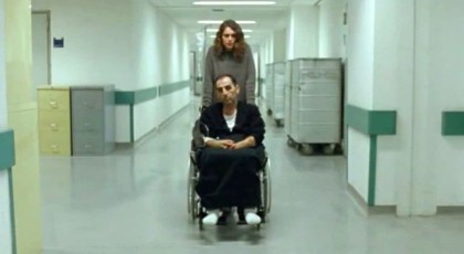 Attenberg is actually, most fundamentally a story about grief as experienced before, rather than after, the death of a loved one. Marina’s father and his intellectual plight call to mind Ari’s father in Stephen Frears and Hanif Kureishi’s My Beautiful Laundrette (1986), living remnant and burnt-out torchbearer for multiple forms of given faith of the progressive left, hoping that industrial development, globalisation, and modernisation could heal all wounds. It gets us out of what James Joyce called history—“the nightmare from which I am trying to awake”—only to fall foul to an alienation from the definition of the self from that an awareness of history provides. Meanwhile Marina falls prey to such totems as her father’s shirt, which she has washed and hangs on the line, only to bury her face in it and hide within its cloth. Marina begs Bella to have sex with her father, calling it a favour she’ll pay back at some time. Bella agrees, leading to a scene in which the two young women, stony and soldierly in their bearing, converge on the hospital and Bella disappears into the father’s rooms to give the dying man his last taste of carnal delight. Labed’s performance, without breaking the mould of deadpan cool, constantly deepens and achieves a cabalistic intensity as the film winds toward its inevitable climax, most especially in the finite twinges of grief that inflect her otherwise calm demeanour with the funeral service rep, and as Marina has to deal with the petty details and cold bureaucracy of the hospital staff after her father has died.
