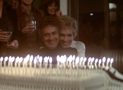 George Webber (Moore) is a highly successful composer who, with his writing partner, gay lyricist Hugh (Robert Webber), is navigating the treacherous waters of being in his 40s. Hugh’s grasping at fading youth is manifest by keeping a young lover (Walter George Alton) whose only line of work is to make Hugh happy. Moore has been seeing Samantha Taylor (Andrews), a musical theatre star and recording artist, for several years, but can’t seem to keep his eyes off the bikini-clad women who walk the streets of his Malibu neighborhood. He especially can’t keep away from his telescope, which is forever trained on his neighbor (Don Calfa), a Hugh Hefner type whose mansion is always filled with naked women who are ready to fuck at the drop of a swizzle stick. George’s discontent overflows when he arrives at Hugh’s home for an evening work session and finds that Sam has arranged a surprise 42nd birthday party for him.