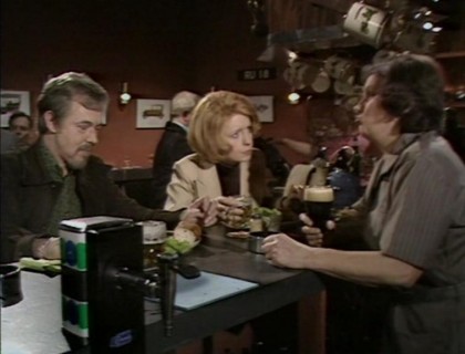 I’ve always had a great fondness for the almost Elizabethan stagelike modesty of classic TV production, and The Stone Tape exemplifies why I prefer it to the ever-slicker modern style that bores me senseless: the emphasis is on strong acting and unshowy simplicity in its effects. Delivering a tremendous boost to its low-key kind of eerie are the layered, unsettling sound effects provided by the BBC Radiophonic Workshop, whose pioneering techniques in sound effects lent Doctor Who a lot of its early distinction, and whose work contributed quietly to the future boom in electronic music. Sasdy didn’t have to do much to sell the tightly constructed story except keep the typically cheap Beeb sets from toppling over, but he maintains a firm grip on a story that burrows deeper and deeper, like its heroine, who can’t give up her theorising about the nature of the room.