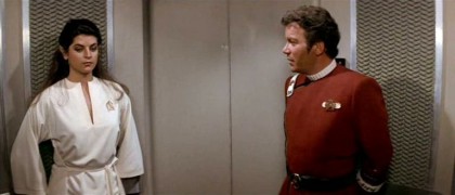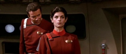 Meyer’s most personal and effective touch was to remake Kirk, Spock (Leonard Nimoy), and Dr. Leonard “Bones” McCoy (DeForrest Kelly) into men reminiscent of his earlier takes on Holmes and Wells. They are men out of their time, aware of retro paraphernalia and culture, offering a continuity with the geeks of Earth past, and possessed of an energy and idealism that’s all the more vital in a future world. The film’s very opening depicts one of Kirk’s prize pupils, Saavik (a pre-Cheers Kirstie Alley), a humourless Vulcan neophyte who nettles under the painful lesson of the “Kobayashi Maru,” a test that places potential officers in a situation where they have to find their grace under the imminent inevitability of death. As well as offering up a memorable fillip of series lore, the fact that Kirk administers the test which he himself successfully subverted in his student days presents a thematic echo that rings out through the rest of the story up to its tragic climax. Kirk, with his recurring refusal to believe in the kind of no-win scenarios the test prescribes, must face the real cost of such a situation.