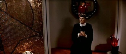Spock’s achievement of a kind of transcendence paves the way for a resurrection (though Nimoy was actually hoping to jump ship permanently), befitting his new status as demigod. He thus fulfils the religious imagery that he’s been associated with since the first film, which found him engaged in a rite to cleanse himself of feeling in primal landscape. Spock’s nirvana overtly contrasts Khan’s failed attempt to become the Destroyer of Worlds. Khan, genetically engineered and clearly associated with a remnant spirit of Nazi eugenics and an accompanying übermensch mentality, his own constantly stated superiority itself is a kind of godhead for his supporters—“Yours is a Superior Intellect,” as their salute to him goes, and one which his lieutenant Joachim can’t quite complete in dying as both salute and curse—proves weakened by exactly the egotism that Spock resists. Khan’s ruthless intelligence proves constantly susceptible to elements he can’t master, and his monomaniacal focus, like that of Ahab whom he constantly quotes, proves both infinitely destructive and yet quaintly impotent. “I shall avenge you!” he promises the dead Joachim, suggesting that in spite of his brilliance, he’s got all the capacity to learn from his mistakes of a goldfish.