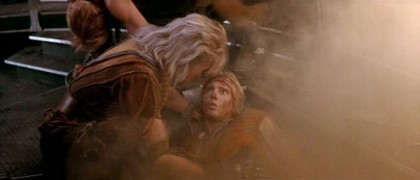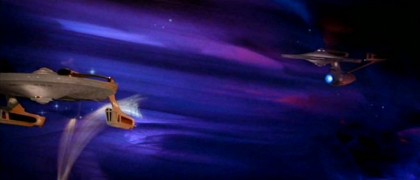 So perfectly does The Wrath of Khan lay out a form of a swashbuckler that the number of similarities in plot and theme between it and Master and Commander demand a few moments to list. In both, the heroes fight off a superior enemy who gets the jump on them in an initial ambush. The emphasis on the battle of wits between captains is all-important. Spock and McCoy are to Kirk as Maturin is to Aubrey, presenting the schism of man of action and man of thought in the context of the supposedly well-oiled machine of these ships of war. The Genesis Device and resulting planet are equivalent to the Galapagos Islands as cradles of wonderment and new potential that excite that scientific mind, a mind which is stifled in being merely obeisant to militaristic exigencies. In both, the physical maiming of a younger crew member is a major tragedy and spur to action. An ambush is facilitated through one ship pretending to be another: Aubrey’s ploy of disguising his ship as a whaler contrasts Khan’s use of a captured Federation ship to sucker in Kirk. Major acts of sacrifice are required to save the heroes’ ship: Spock’s fatal venturing into the reactor to repower the Enterprise matches Hollum’s suicide in belief he’s the Jonah that haunts his ship, and Aubrey’s hacking free a fallen mast, though its means a man must drown.