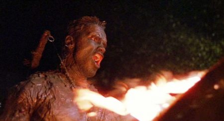 Dutch’s disarming of the Predator in this regard stirs the Predator’s own pride, inspiring it to strip off its weaponry and armour and meet Dutch on exactly the same level of pure physical force and guile. McTiernan’s immediate follow-ups, Die Hard and The Hunt for Red October, would both revolve around conflicts defined by arts of eluding and utilising landscape, but which eventually devolve eventually into traditional tests of strength between personally offended and challenged antagonists. The latter film would prove Hollywood’s half-accidental farewell to the Cold War with its eventual détente of technological advancement: when everyone can hide, no-one can, something Dutch and the Predator have already discovered. Dutch’s adoption of bushcraft offers an answer to the Vietnam problem, as Schaffer strips off all technological pretence and remakes himself as a guerrilla warrior, armed with tool gleaned from the environment he must disappear into. But the greatness of Predator is that it finally goes much deeper than such recent psychic horizons. By the time Schaffer announces his resurgence to his foe in a rite of fire and a howl of prehistoric violence, we’re back in the dimmest recesses of the human imagination, struggling for survival in some post-Ice Age landscape against the deadliest beast in the forest.