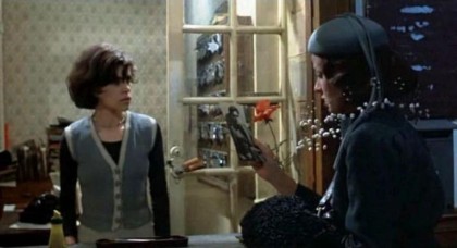 And yet Duelle’s unique approach plays out nearly straight according to the dictates of a noir narrative: the characters battle over an emblem of wealth and steadily annihilate each other and themselves in the process. The Fairy Godmother jewel plays the same poisoned-chalice device at the heart of The Maltese Falcon and especially the Great Whatsit of Kiss Me, Deadly: like that manifestation of raw, consuming power, the jewel leaves marks upon the flesh of those who encounter it and spells inevitable doom. However, Rivette’s dialectic removes standard, dependable props from those familiar arcs, rendering the tale overtly mystical and inexplicable, and the spaces have to be filled in with intuition. Rivette begins with a familiar theme of his, Lucie’s desire to save her brother who’s enmeshed in a mystery (a la Paris Belong to Us), and plays her honest naïveté against the femmes fatale, Viva and Leni. The familiar economic and social parables of noir are present: Lucie, Pierrot, and Elsa/Jeanne all come from a low social bracket and are desperate to rise; the demi-goddesses live and pose as aristocrats, and the jewel is what they all covet.