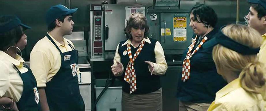 The film begins in the most humdrum circumstances imaginable. Middle-aged restaurant manager Sandra (Ann Dowd) contends with a supplier (Matt Servitto) after somebody left a freezer open overnight, ruining much of the restaurant’s vital ingredients. Workaday tensions percolate after Sandra’s altercation with the irritable supplier: news that a secret franchise inspector might be in the store later in the day puts her nerves on edge. Her employees are the usual roster of half-interested youths, including Becky (Dreama Walker), the goggle-eyed, pretty blonde with a number of boyfriends. The contrast between harried, anxious Sandra and blithe young Becky is underlined as Sandra awkwardly tries to chat up her long-time boyfriend, construction worker Van (Bill Camp), into finally proposing marriage. Becky shows off pictures of one of her hot beaus to Sandra’s deputy Marti (Ashlie Atkinson), and Sandra tries to be hip in wielding the phrase “sexting.” Early in the restaurant’s busy evening shift, Sandra receives a phone call from a man calling himself Officer Daniels: when he asks questions about a “young blonde” employee out front, Sandra immediately assumes he means Becky. Daniels explains that he has a witness on hand claiming that Becky stole money from her purse whilst being served. Sandra calls Becky back into her office and relays Daniels’ accusations before handing the phone over to the girl, who protests her innocence. Daniels aggressively browbeats Becky before asking Sandra to keep Becky at bay in her office. He then asks her and Marti to search Becky’s purse and pockets, and when nothing is found, to get her to strip down to confirm she’s not hiding the money in her clothes or on her body.