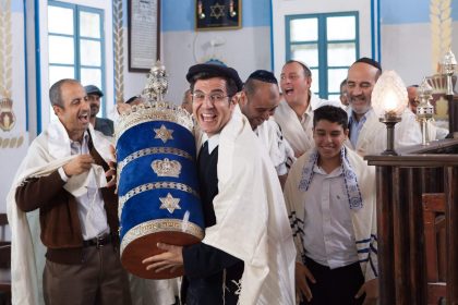 The milieu, though possibly not the plot, of The Women’s Balcony is based on screenwriter Shlomit Nehama’s upbringing. Her knowledge of and affection for the ways of her Orthodox Jerusalem community make it easy for viewers to become immersed in and identify with a culture they may never have seen before. What is particular to this community—kissing affixed to door jambs, using a non-Jew to perform tasks that Jews are prohibited from doing on the sabbath, trying to form a minyan (10 men) needed to hold a religious service—is educational for non-Jewish viewers and stirs familiarity and affection in Jewish audiences. What is universal—the easy love between Zion and Ettie, the exasperation of Ettie’s unmarried niece Yaffa (Yafit Asulin) at the constant nudges to find a husband, the bar mitzvah boy who thinks the collapse was his fault for not learning his torah portion and hoping something would prevent his embarrassment in front of the whole community—brings us all into communion with their humanness.