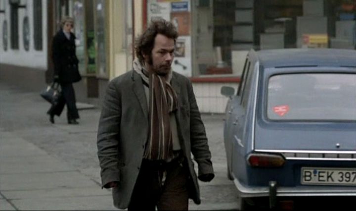 In the pub, he meets up with his old friend Eva (Eva Mattes) and the pair of loathsome pimps (Wilhelm von Homburg and Burkhard Driest) she works for. After being rejected by the pair, Eva goes home with Bruno to the apartment his friend Scheitz (Clemens Scheitz) has been keeping for him. Scheitz, a little old man in a black topcoat and beret; Bruno; and Eva form an odd family for a short time. Soon, the pimps come into the apartment and trash the place; later, Eva comes home beaten and bruised. Scheitz has a relative living in Wisconsin who will hire Bruno and get Eva a job in a truck stop. The trio review a map to find out where Wisconsin is, fantasize about mobile homes, pack up, and head for America.
