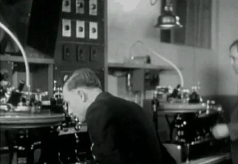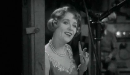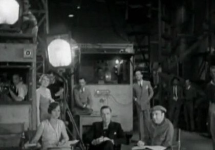 We also go inside the recording and filming booths during the filming of the wacky “I’ve Got My Eye on You” production number of Rainbow Girl and see the protective booths used on set to muffle the sound of the cameras and an operator watching the recording disks to ensure there are no skips. It seems fairly clear to me that tap dancing got a boost because it was needed to further drown out the sound of the multiple cameras used in these early musicals. The musical number itself is pretty interesting, as some dance characteristics that seem patented by Busby Berkeley, such as formation dancing and the use of three half-moon walkways seen to best effect in the number in Gold Diggers of 1933, were commonly used by other choreographers, in this case, Jack Haskell. And while White’s difficulties can be seen on her unsmiling, concentrated face as she blunders her way through the choreography, her jazzy singing is rather enjoyable.