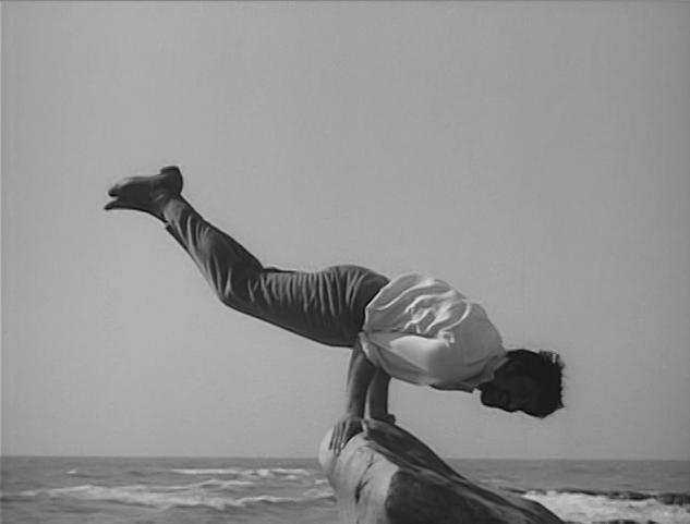 Gaby Dupont, played by the Piaf-like Annette Robertson, lived with and supported Debussy for nine years as they both explored the bohemian artists’ world of Paris. They are shown in the throes of a young, carefree love—walking in the rain, chasing through a garden, with playing under the scene. We learn during this scene that Debussy took up music because of French poet Paul Verlaine’s mother-in-law, who claimed to have studied with Chopin and who taught Debussy how to play piano. Again, we learn these facts from Reed in voiceover, speaking as Debussy. And then Russell moves us into the present, as we watch Robertson and Reed act out the love of Debussy and Gaby while swimming.