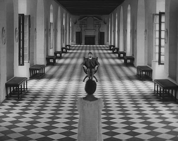 The film then trails into Debussy’s final years, when illness and ennui sent him into seclusion, and he continued his work on a piece based on Poe’s The Fall of the House of Usher. Twelve years of tortuous work imagining a man, Roderick Usher, with whom he completely identified, yielded only “two or three sheets of music.” Russell creates a wonderfully evocative, short horror film in which Reed moves through an enormous, empty castle. He is met in a geometric hall not by the risen ghost of Usher’s sister, but rather by images of Gaby and Lily, the women he wronged, as the final strains of “La Mer” yield to the funeral procession set up in the first scene of the film.