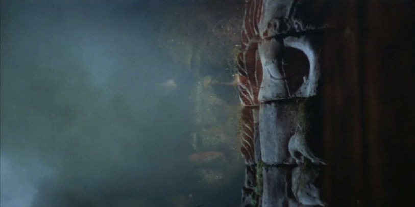 Equally memorable is the kinetic, late appearance by Dennis Hopper as a photojournalist trapped in Kurtz’s compound, an emissary of both mass media and countercultural impulses, and embodying every exposed nerve of both. Hopper’s own spiral into hophead exile after The Last Movie (1971) was perhaps one Coppola wanted to channel, and certainly no one embodied the crack-up of ’60s idealism more than the director of Easy Rider. His character stands as a kind of priest/court jester for the titanic Kurtz, rambling with incoherent urgency in his efforts to communicate both Kurtz’s greatness and his depravity, as if he’s found a kind of guru who scares the shit out of him. Not coincidentally, the Manson murders are invoked during the voyage upriver as Kurtz’s ignoble stateside avatar. In finally meeting Kurtz, Willard is ritually washed by his followers, who include Colby (Scott Glenn), another soldier sent on the same mission but seduced into the mesmerised fold, and presented as a trussed prisoner whom Kurtz regales with mysterious anecdotes: his description of having once sailed down a river past a place where “heaven fell to the earth in the form of gardenias” suggests that somewhere is a natural paradise to mirror this stygian abode. Kurtz is glimpsed mostly as a saurian beast in the shadows, running a hand over his bald head like a tarantula crawling on a melon, a creature of strange discursions and secret intentions that may well have proven to be so much quackery.