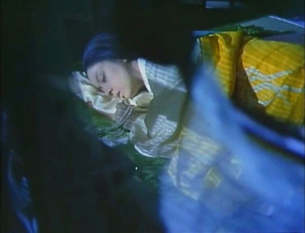 Moritou literally and figuratively passes through the gate of hell several times, including when he approaches the shrine to the rebellion’s dead with his brother’s name on it, murmuring, “The poor bastard!” whilst steadily marching toward the fate he becomes agent of, entrapping Kesa through a ruse and promising, in his fearsome state, to kill her and her relatives if she will not help him to eliminate Wataru and become his wife. Moritou’s transformation of himself into a kind of demon in his pursuit of his desired one is matched by Kesa’s act of martyrdom, built up to in a spellbinding sequence reminiscent of the best Val Lewton films, in which Moritou sneaks up on the Wataru house through moonlit fields whilst Kesa, inside, cajoles her husband into swapping rooms. When Moritou strikes at his quarry in bed, he finds that he’s skewered Kesa, which, with bleak irony, breaks the spell of obsession on Moritou. Shocked and aggrieved, he awakens Wataru and demands that Wataru kill him as punishment and atonement for his crime.