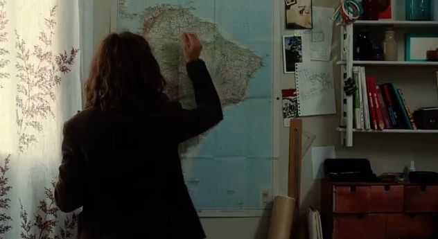After Sullivan leaves, Camille tacks up a map of South America and charts with push pins his travels as announced by the weekly letters she receives from him, cellphones not having entered the marketplace yet. After Sullivan has reached Chile, the letters stop. Eventually, Camille takes down the map and pins. She also tries to commit suicide. While in the hospital, we see a book on her nightstand about the Swiss architect Le Corbusier. Camille’s brother makes a snide comment about this “light reading.” Camille says nothing, but she starts on her journey to become an architect. She will eventually fall in love with one of her teachers, Lorenz (Magne Håvard Brekke), move in with him, and start work at his firm.