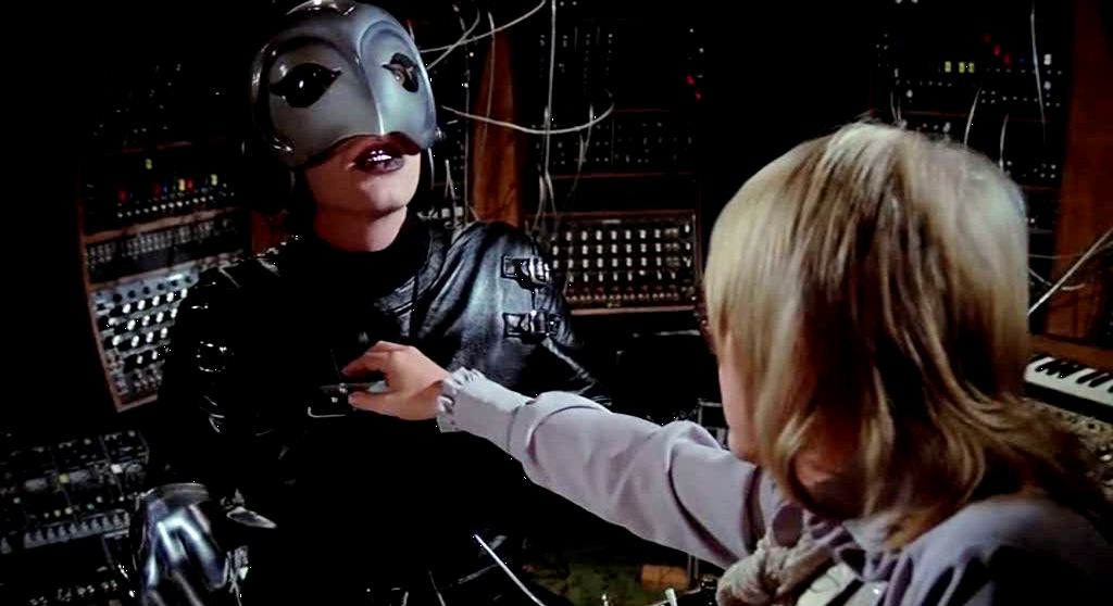 Swan’s genius as a creator and manipulator of talent is drawn out with impudent concision as he fine-tunes an electronic gadget for Winslow to speak and sing through, turning his hoarse, electrified wailing into a smooth croon with studio gadgets: he can turn the worst freak into a pop god, and vice versa. It’s worth noting that De Palma’s Phantom (being as De Palma was a friend of George Lucas, and who would write Star Wars’ opening scroll) seems to have influenced the look and concept of Darth Vader, who would similarly be revealed as another resurrected Phantom. Swan, of course, plans to double-cross Winslow even in the act of pretending to give him a second life.