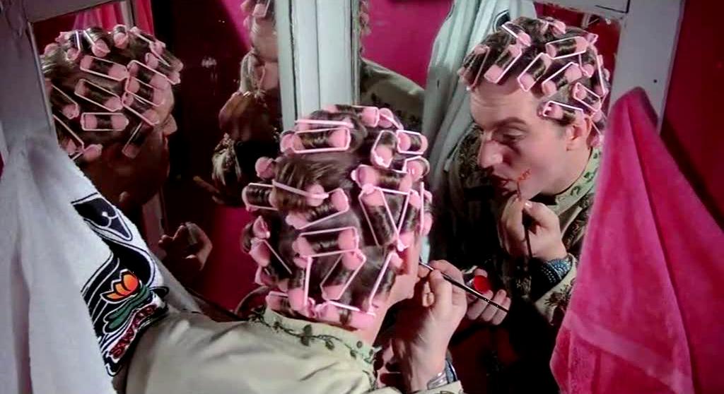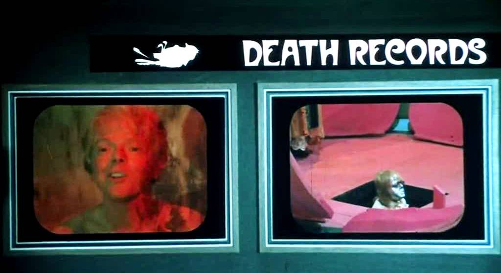 De Palma’s version of Leroux’s tragic Phantom is Winslow Leach, played by William Finley, a gangly, adaptable character actor who appears in much of De Palma’s early work, and here takes the lead for the first and last time. His Leach bears a distinct resemblance to Warren Zevon. Hapless, dowdy, and painfully naïve in his life, Leach’s superlative talents as a musician serve only to destroy him. Hired to play piano during breaks in Swan’s shows, Leach is overheard by the impresario, who, impressed, orders his cruder flunky Philbin (George Memmoli) to get hold of Leach’s music. Winslow is reluctant to part with his songs, which are only portions of a magnum opus based on the Faust legend, but agrees on the promise that Swan wants to produce the record. Winslow tries to see Swan at his Death Records office and then his home. There he meets a young singer, Phoenix (Jessica Harper), practising for an audition using one of the Faust songs, and Winslow is dazzled. Winslow is quickly ejected when discovered, and so is Phoenix, when finds out the audition is just the nightly intake for Swan’s harem of groupies and refuses. Winslow, on the other hand, dresses up and joins the concubines and manages to meet Swan, but he promptly has him plucked out, beaten up, and then set up by flunky cops on a drugs charge. In jail, Winslow has his teeth removed and replaced by metal ones as a part of a perverse experiment in sanitation he’s forced into, and when he hears one of Swan’s stars singing his songs on the radio, he goes berserk, escapes, and breaks into Death Records. While attempting to sabotage the production machinery, Winslow is caught in a record press and burns his face. He stumbles outside and falls into the harbour, and is presumed to have drowned.