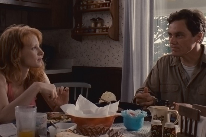 Nichols also makes the working-class milieu of this Ohio community real. The familial and friendly bonds, the fears and doubts, the suspicions of the community all ring true. The house Curtis and Samantha have is not the typically glossy, well-appointed home common in most films—the furnishings are well-worn, a bit tacky, and the entire home has a lived-in feel without seeming like a cliché. Curtis, Samantha, and Hannah are a likable, relatable family, and much credit goes to Chastain for giving another full-bodied performance, one of a woman whose warmth and fragile strength make us feel deeply for her and her family.