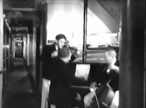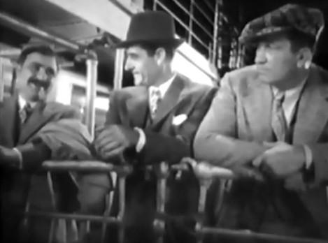 In 1934, Victor McLaglen was the biggest name in the cast, ranking top billing and earning it with his comic performance that keeps the crime story fast-paced and entertaining. His mismatched clothes, notably anchored by a tartan wool golfer’s cap, make him a walking sight gag, but he seems comfortable in a dumb-like-a fox façade. Helen Vinson slips between her high-class librarian and lowdown chisler without a seam showing, and Fred Keating is a mesmerizing bon vivant who rolls with the punches and doesn’t seem half as interested in the money as in the adventure. New Columbia contract players Moe and Curly Howard and Larry Fine stumble around as the ship’s band, with Larry being the only Stooge with lines. The stereotypically dotty Englishman played by Arthur Treacher is delightful in his short time on screen, and he and Curly pull off a wordless gag that had me in stitches.