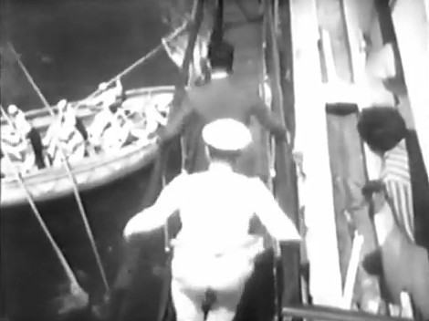 Underscoring it all is John Gilbert’s rueful performance. In his first scene, he steps out of a car that has carried him and his lover Gert (Tala Birell) to the ship. Gert is loathe to let him go, and even has a steamer trunk complete with turntable sent onboard for him with a recording she made professing her undying love. Steve is determined to quit drinking and start writing, but Gilbert looks like he’s actually been on a three-day bender when he says good-bye to Gert. Reports are that Gilbert and other cast members were drunk during most of the location shooting at sea, bored by delays caused by bad weather. The many, many drinking scenes in the film may have been an attempt to compensate for their frequent incapacity. On the other hand, filming on a real ship allowed for some intriguing and thrilling scenes, including the rescue. Milestone’s camera made the most of the depths and angles the location afforded and his fluidity overcame some of the meandering moments this juiced-up slice of life fell into.