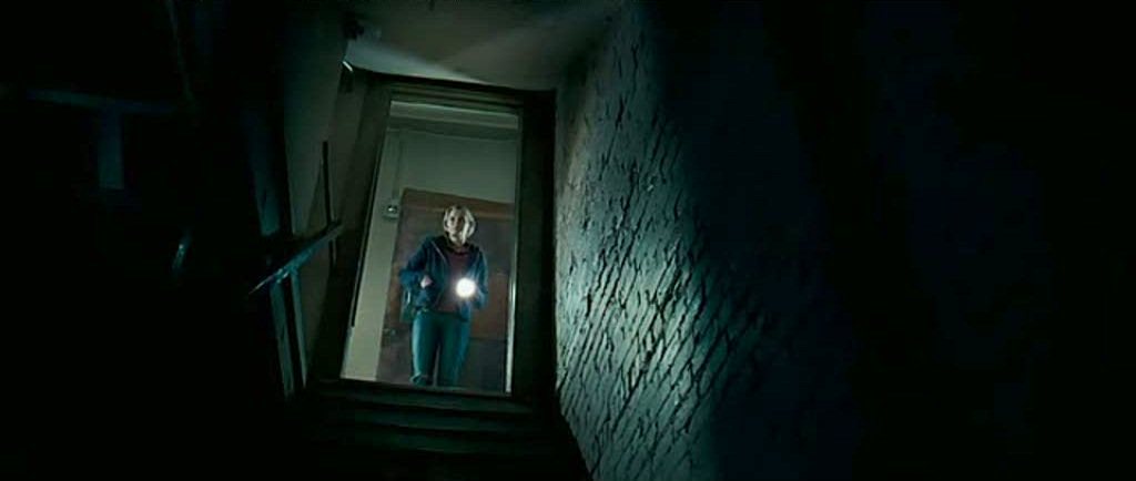 Unlike some obvious precursors like The Haunting’s (1963) Hill House or The Shining’s (1981) grandiose Overlook, The Innkeepers‘ Yankee Pedlar is nominally vintage, but is actually undistinguished in any quality except by age. But in the grand generic tradition, it has become a snare for frustrated dreams and circular lives: as well as the ghost whose backstory carries intimations of despair and abandonment, an aged man (George Riddle) turns up asking for the room his spent his honeymoon in, a room that, like most of the rest of the hotel, has been stripped down and sealed up. Claire and Luke acquiesce to his request, only for Claire to later find he’s committed suicide, the final catalyst for an onrush of terrible visions. Much of The Innkeepers is sustained by the attentive back and forth between Claire and Luke, particularly in an epic movement where the pair escapes ennui by getting drunk and playful, Claire’s flaky forlornness for a moment almost connecting with Luke’s sexual frustration and stymied attraction to his coworker. This tension resolves as Claire suggests descending into the basement to hunt for Madeline, culminating in a intense sequence offering only close-ups of the two actors in the midst of a sea of darkness, and Claire fearfully informing Luke that the wraith is standing right behind him. Luke freaks out and flees the hotel entirely, leaving Claire to try to survive alone. This sequence is enormously pleasurable on several levels—the slow-rising, sustained tension, the precision of characterisation and acting, the cunning use of camera perspective that generates a certainty of the supernatural whilst still never confirming its existence beyond Claire’s point of view.