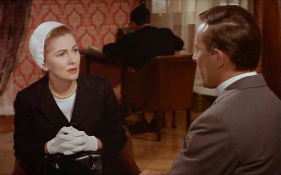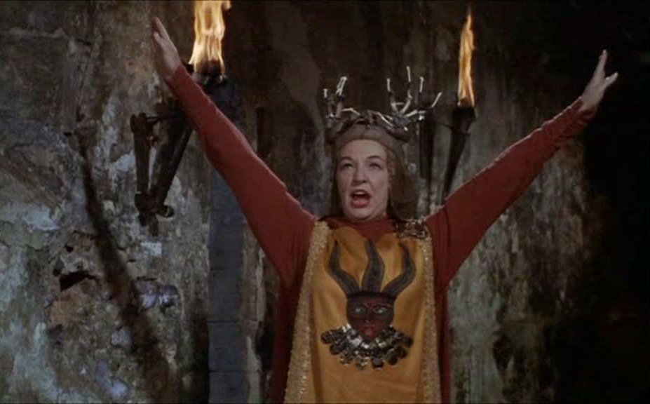 The Witches is fundamentally a good yarn, but it required a compelling lead performance to give the drama true pep, and Fontaine delivers. Her Gwen is shaky, but intelligent and dogged, fighting against her own brittle nerves and fear of the unknown. She is severely contrasted by the film’s other major female figure, Stephanie, a popular newspaper writer whose bracing, if slightly grating bravado contrasts her brother’s air of tragic failure. He had wanted to be a priest, and as well as dressing as one, spends much of his time locked away in private playing church bell and choir music and drifting away in melancholy distraction when trying to explain his fixations to Gwen. Fontaine offers, in a way, a bookend to her career-making part as the heroine of Rebecca (1940), considerably older and wiser, but equally perplexed by the workings of the world where, be it in Africa or rural England, irrational, cryptic, boding forces work to annihilate or assimilate anything that disrupts their cohesive fabric.