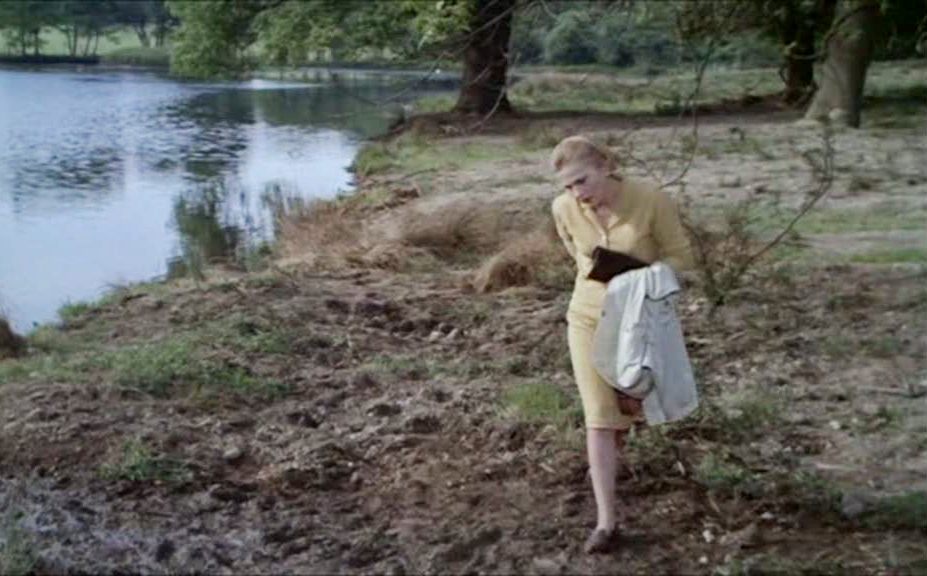 Frankel’s unmannered, clear-eyed direction helps the film walk a tightrope of tone, only skewing from the realistic in such odd moments as Granny Rigg telling her grey cat to follow Gwen, and a slowly manifesting sense of more than usual evil lurking under the surface, as when Ronnie tries to alert Gwen, claiming to have seen Linda being punished by Granny Rigg, who jammed her hand into a clothes wringer. Ronnie’s romancing of Linda isn’t just verboten because she’s important to a witches’ rite, but also because his mother isn’t local: the other children are all so in-bred, as Sally says, it’s hard to distinguish the variations on the “Heddaby face.” Frankel wields Hitchcockian technique as Gwen notices details like the many bare footprints scattered in the mud by the lake where Dowsett drowned, only to be erased as a flock of sheep charges through, panicked by Stephanie’s dogs; it’s a moment clearly reminiscent of the erasing of Miss Froy’s dust-written name in The Lady Vanishes (1938).