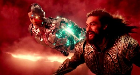 Victor’s struggle with his new, unpredictable, unnervingly self-willed cybernetic enhancements offers another stage for the running psychic struggle of man and superman. Victor’s lot as something not too far from the antihero of some body horror movie, glimpsed hiding in the shadows of his father’s apartment in a faintly menacing and baleful fashion that recalls Jeff Goldblum in David Cronenberg’s The Fly (1986), dealing with his rebelling body’s whims in randomly releasing dangerous energy blasts. Victor’s mainline into the technological marrow of the world swiftly proves indispensable, as he gains greater control over his “body” and joins his natural gifts for analysis to his augmented senses. Barry, on the other hand, in spite of his troubled past, provides uncomplicated dash and eccentric, boyish vigour to the enterprise. Aquaman arrives as perhaps the least well-developed of the characters in spite of possessing legendary backstory and having the oceans at his command. The film offers such brief visions of his underwater kingdom and fellow merpeople they scarcely register, and whilst the approach to Aquaman as a hairy, macho outsider, a bit of rough trade covered in tattoos, intends all too obviously to rescue the character from his previous status in the eyes many as a fey embarrassment in this realm, but instead too often symbolises the film’s awkward pandering in his swaggering faux-cool, such as his already immortally stilted exclamations of “My man” and “Booyah.”