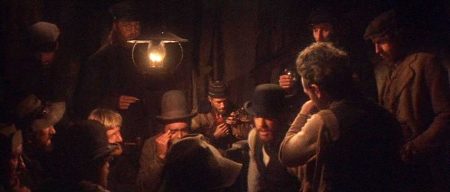 The audience has seen Miller before McCabe, in the background as he negotiates with a Bearpaw pimp, moving about with a taciturn determination to close herself off, but apparently overhearing enough to see an angle. The way Miller wolfs down her food on McCabe’s dime suggests that she hasn’t been doing that well, and she like him needs that very specific tide pool formed by history, the wide-open town ready for her peculiar arts, to truly prosper. But Miller is snappier, cannier, faster-paced as an entrepreneur than McCabe. Perhaps that’s because her looks are a transportable ore that needs no mining or refinement, holding value so long as she keeps following the frontier, but also leave her perpetually patronised. McCabe has to charm, to pause and weave a space about himself to be effective; Miller must barge through. Miller presages a later development in capitalist development than McCabe, who profits initially through the pastimes men pursue without women; Miller lays down a template to create a hub where one part of business creates another, by building a bathhouse men want to use to wash and get ready to then venture on to a “proper sporting house with clean linen.” Miller fends off McCabe’s stammering protests of business knowledge with an impressive display of hard-won acumen, how to deal with such bottom-line-affecting problems as lesbianism and outbreaks of religiosity and venereal disease. The Harrison Shaughnessy Mining Company arrives as the next stage, impersonal and all-consuming. It doesn’t need allure or skill.