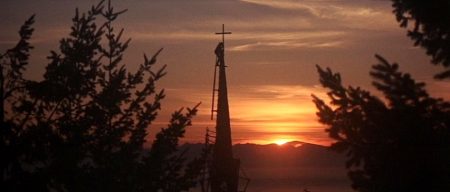 Even the hints of religious imagery and abstracted spirituality in Cohen’s songs accords well with the aspect parodying religious myth (carried over from MASH’s Buñuel-derived Da Vinci spoof) as McCabe becomes a cold-climate Christ figure, sacrificed to communal selective blindness and the religion of business. The church that gives the town its name seems irrelevant to its daily needs, needs fulfilled instead by McCabe and Miller, but this is brutally inverted as McCabe finds his shotgun appropriated by the church’s self-appointed guardian, who orders McCabe out of the church with cold and punitive purpose as he tries to hide their whilst eluding the assassins. Only then the pastor is blown apart by a gunman, mistaken for his quarry, and the church catches fire from spilt, ignited lantern oil, a disaster that brings out the townsfolk to save the building whilst McCabe and his enemies continue to battle unnoticed.