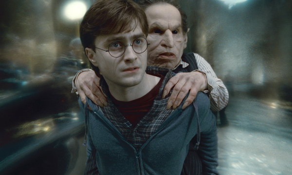 A decade and many dollars later, the Harry Potter saga comes to an end, and I found myself looking back on why I even got interested in the series in the first place. I can actually pinpoint it to a TV ad for the first film, a glimpse of the inside of Gringott’s, the goblin bank, with John Williams’ inspired drunken-waltz theme ringing out. There was something about the mix of sound and vision that hooked me and the satiric strangeness of the image, and the promise of a revival of the spit-polish Spielbergian production style I had grown up with powerful enough to draw me into a movie theatre at a time when adult Harry Potter fans were still mostly in the closet. When I partook of this last installment, three-quarters of the audience were over 20. All of us, the kids and adults who first went to see that film, and especially the actors portraying the young heroes—Daniel Radcliffe, Emma Watson, Rupert Grint, Tom Felton, Matthew Lewis, Bonnie Wright, and many others—are different people to those of a decade ago, and what a 10 years it has been. I felt gratified that a major set-piece returns to Gringott’s with a vision of those malevolent little goblin bureaucrats now having their world turned upside down by a rampaging dragon. If that’s not a metaphor for the current global financial crisis, it might as well be.