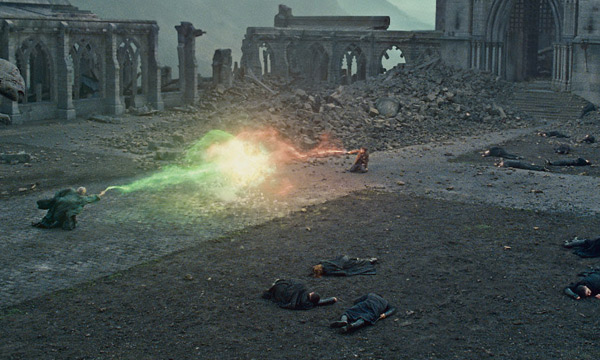 Of course, it’s not as simple as that, but here the overt Christ parables snap into focus as death and resurrection result. Fortunately, muscular Christianity is the point here. Thrilling, fleeing visions of apocalyptic anarchy sprawl across Yates’ expertly controlled widescreen framing: there’s none of Michael Bay’s flagrant visual bullshit here. Neville actually becomes the most compelling figure in the battle, bravely luring Voldemort’s soldiers into a trap on a disintegrating bridge, and standing up with a Churchillian speech and show of defiance to heckling bad guys about to get the shock of their lives.