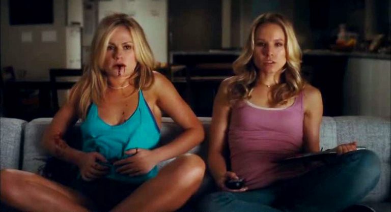 Two teen girls (Lucy Hale and Shenae Grimes), kicking back for an evening, put on the latest instalment in the never-ending Stab series, derived from Gale Weathers’ books about the original murders depicted. They soon find themselves being stalked by a new Ghostface killer, but this whole scene turns out to be the start of Stab 6, which is in turn being watched by two young women (Anna Paquin and Kristen Bell), arguing over the vicissitudes of modern horror movies. Their argument is resolved when Bell sticks a butcher knife in Paquin—and yes, this is the start of Stab 7. Considering that this is exactly what modern Hollywood is starting to feel like, a sequel wrapped in a prequel within a remake, the joke is exact, and the stage seems set for serious, and relevant, meta-gamesmanship.