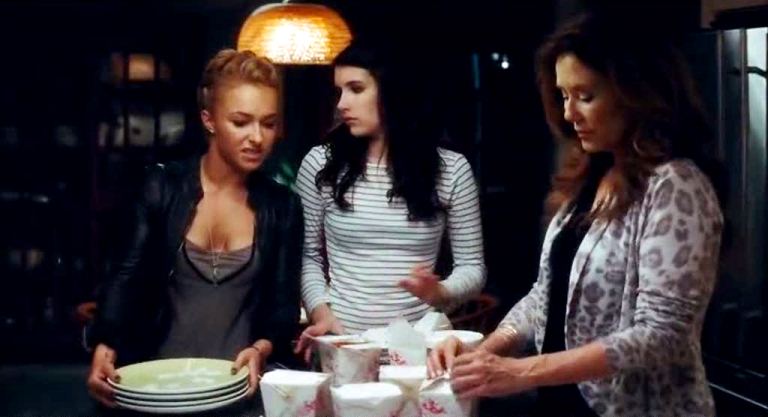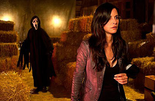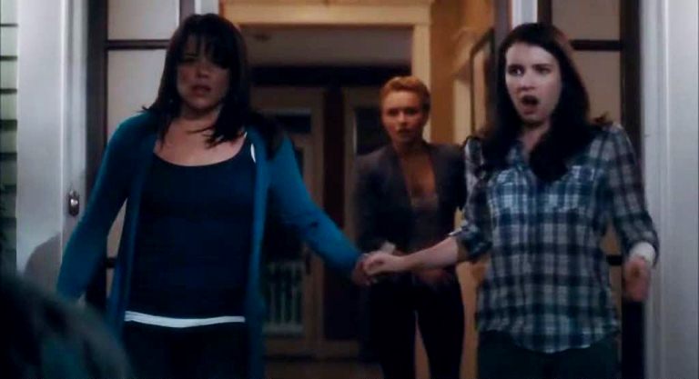 Sidney is reunited with her aunt Kate Roberts (Mary McDonnell) and cousin Jill (Emma Roberts), who are happy, if uneasy, to have their benighted relative back home. The killer, or killers, as it quickly becomes apparent that a tag team is at work, seem to target Jill and her friends Kirby (Hayden Pannettiere) and Olivia Morris (Marielle Jaffe). After fooling Jill and Kirby into thinking Ghostface is in Jill’s bedroom, and then getting them to arrive just in time to watch as he disembowels Olivia, Jill and friends genuinely suspect Sidney is an angel of death. Gale, frustrated with no longer being a credible or credentialed investigator and with Dewey freezing her out of the investigation, puts herself in danger.