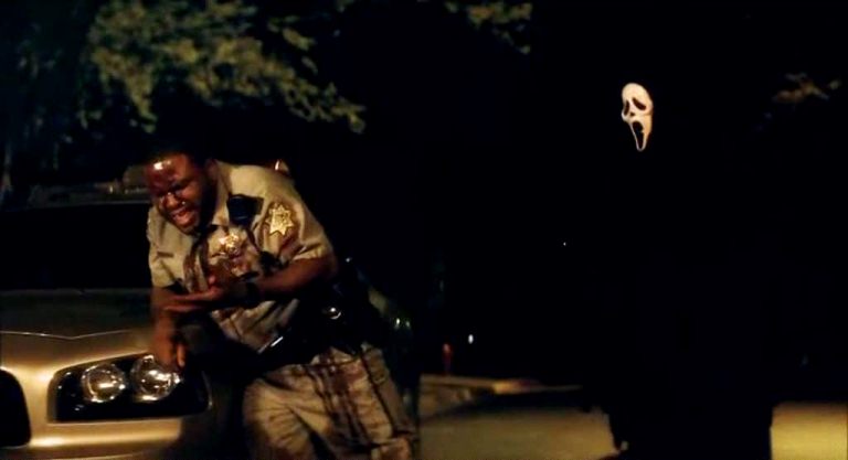 But the film gets in gear with a solid bit of stalk and slash, as Sidney’s publicist, the chirpily venal Rebecca Walters (Alison Brie), is hunted in a hospital car-park. Brie’s comic performance is terrific, as is the punchline: her body is hurled out from the car-park to land amidst a press conference Dewey is giving to assure the public everything’s all right, a beautifully black-hearted satirical coup. Some red herrings are offered: the always-appealing Shelton’s deft performance shades into a hint of menace as Judy tries to prod Sidney into remembering her from high school, putting in mind that attention, a great modern currency, who gets it, and for what, has been a constant theme in the series. Gale is attacked when she tries to infiltrate Charlie and Robbie’s Stab-a-thon and put it under remote camera surveillance; hoisted by her own petard by the killers who have done the same thing, she is saved in the nick of time by Dewey. There’s still some tongue-in-cheek qualities to some of the film’s murders, like the fates of the two hapless deputies, Perkins (Anthony Anderson) and Hoss (Adam Brody), who fret about the low probability of surviving this sort of film as policemen “unless you’re Bruce Willis,” and Perkins, as he dies, makes his last words “Fuck Bruce Willis!”