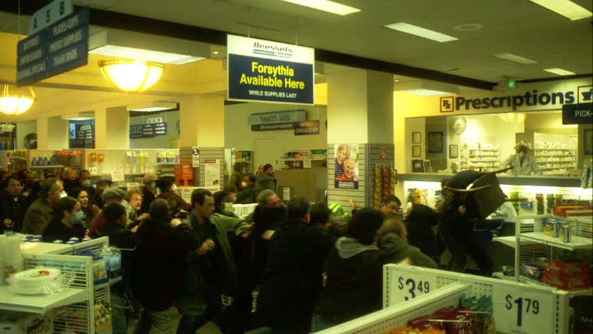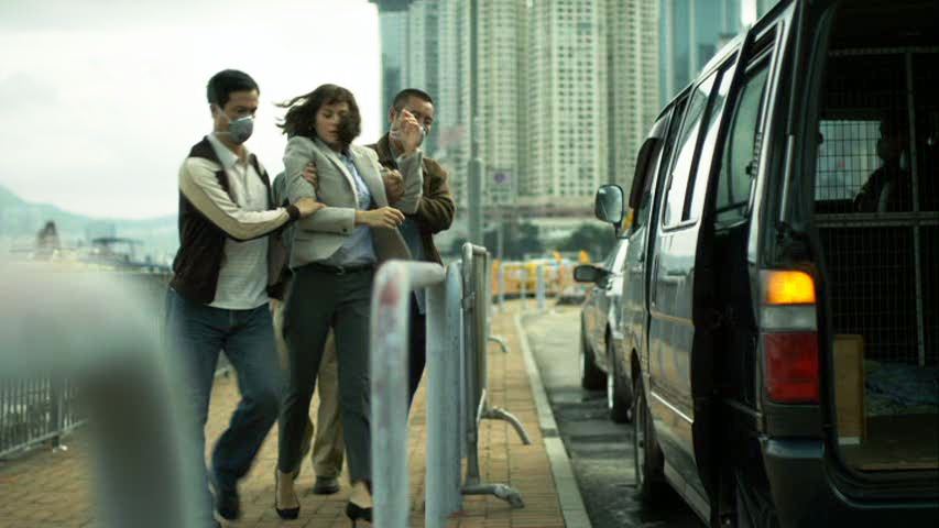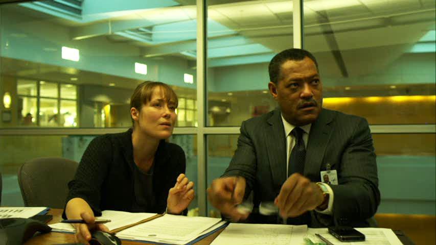 Krumwiedler’s wickedness continues when he attempts to disgrace Cheever by uncovering how Cheever tried to get his wife (Sanaa Lathan) to leave Chicago, and, of course she, like all foolish wives, lets it slip to friends, and so on and so forth—not that this plot element has actual consequences apart from causing Fishburne’s affect of stony decency to become slightly stiffer during press conferences. That Cheever’s actually a decent bloke is illustrated through his conversations with cleaning man Roger (John Hawkes, who might have reasonably expected his Winter’s Bone work might elevate out of parts like this), to whose son he gives his own dose of the vaccine once it arrives, because, well, he’s just good that way. Krumwiedler and taciturn Asians are not the limits of the film’s shallow villains, for Mears also has to deal with a ludicrously nasty Minnesota Department of Health official (Tara Mallen) on the way. One of the film’s few moments of any incipient menace and tragedy comes when Mears awakens in a hotel room to find herself infected, and hurries to track down the hotel employees she may have passed it on to. She is later glimpsed lying with other victims in the disease centre she helped set up, but Soderbergh can’t wring any irony out of that, chiefly because he segues into another cheap piece of pseudo-irony, as Cheever learns he can’t extract her to bring her to the CDC’s better facilities because the plane used for this has commandeered for a sick congressman.