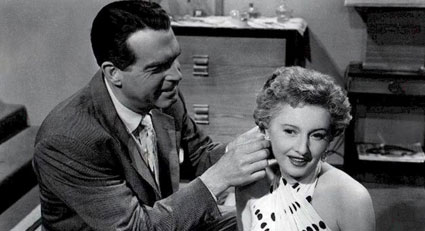 Wilder’s view of humanity is essentially jaundiced. A fugitive from Hitler’s Germany, he had seen the irrational rise up in Europe and spent the better part of his career exposing the world to its own grotesqueness. His transformation of an actor known for his nice-guy roles into a fatuous thug is as perverse as his glorification of pro-Nazi aviator Charles Lindberg in The Spirit of St. Louis (1957). Wilder, the ultimate manipulator, takes the same psychological approach to his material as Leisen did, but sends his characters over the cliff.