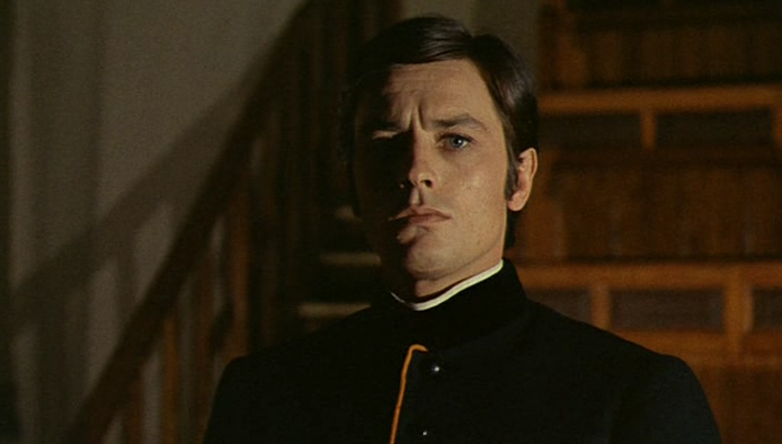 It is, of course, a story about the nagging presence of conscience as the only limit on the desire for gratification, as if Wilson has been split at birth into living embodiments of his ego and superego. The subject is also contiguous with Malle’s interest in the porous limits of acceptable behaviour, and the kinds of experience that make or mar people, whilst stylistically it evokes the subverted romanticism of Visconti’s Senso (1954). He essays the stages of Wilson’s life, each building to the crucial moment of interruption, with beautiful control, conveying the relish with which Wilson anticipates gratification and his agony when he’s cut off each time like a frustrated orgasm finally gained when he stabs his double to death, only to realise his self-destructive mistake. A personally nostalgic mood infuses the schoolyard images of the young lads pelting each other with snowballs, juxtaposed with the alien flavour of young Wilson’s dead-eyed junior psychopath stare as he tears up a letter from his mother and tries to strangle his double in bed. The especially frigid cruelty of the scene in which Wilson airily mocks his medical lecturer’s cant as he relentlessly circles the bound young woman, caressing her bare skin with the edge of his scalpel, builds to a wicked punchline as the woman, freed by the second Wilson, can’t tell the two apart, and moves to embrace the wrong one, receiving a hideous gash from the scalpel Wilson still holds. The assured slow burn reaches a crescendo in Delon’s lengthy encounter with Bardot’s glorious Giuseppina, full of anticipated sadomasochistic designs, with this black-haired, cigar-smoking, female equal and opposite to Wilson taunting him all the while, his inner tension is palpable all the way. She thinks she knows exactly what he’s about, and expects mere sexual gamesmanship, not the calculated viciousness she gets.