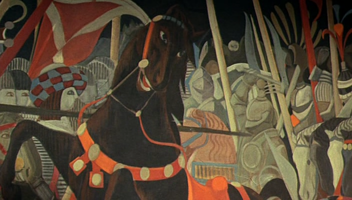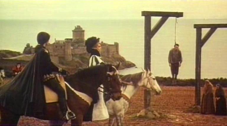 “Metzengerstein” would be better if Vadim hadn’t been such an unvarying tease: his provocations remain firmly on the near side of mere naughtiness, whilst never achieving sensuality. As in Barbarella, there’s something slapdash about the way he develops his ideas, unable to reconcile his lazy, playful touches with the need to create a deeply morbid atmosphere. The mix of solidly naturalistic settings, highly stylised costuming, and incipient perversity does, however, imbue his work with a deceptive cumulative impact. The location shooting, particularly in the use of the Finistèr coastline, aids in drawing out the theme of natural forces exacting merciless reminders of mortality on mere humans, whatever their social pretentions. Vadim’s real talent for highly rhythmic editing and intensely composed sequences comes out in flashes: during the apocalyptic menace of the stable burning, smoke blackening the sky and the Baron’s fleeing horses erupting out of the smoke, and in the latter stages as the Contessa’s dooming bestial passion intercut with a weaver’s efforts to repair a singed tapestry depicting just such a great black horse, as if fate itself is a patient embroiderer.